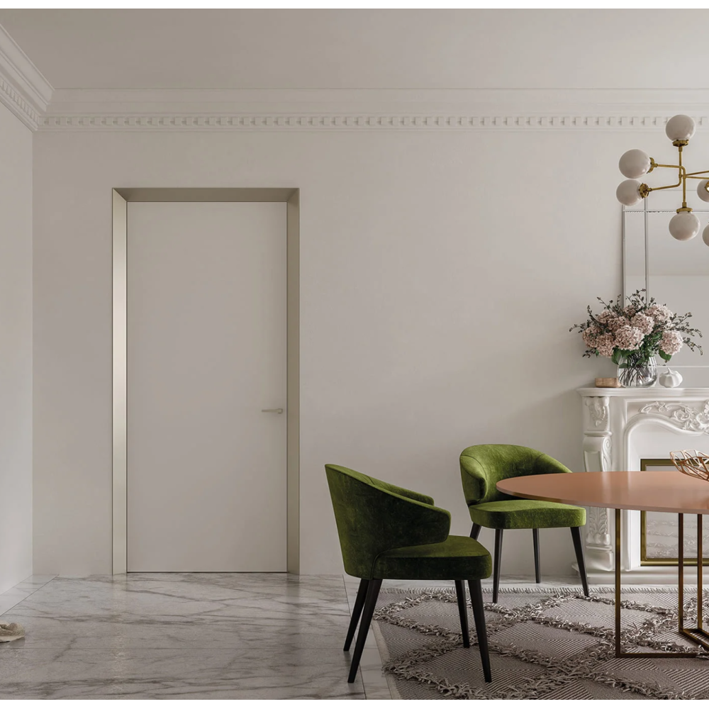 ECLISSE 40 jest pierwszym produktem w kolekcji ECLISSE eksponującym ościeżnicę: rama wyłania się ze ściany tworząc dyskretną lecz widoczną ozdobę. Nie stanowi już wyłącznie elementu technicznego i funkcjonalnego, a przeistacza się w element ozdobno-wykończeniowy.