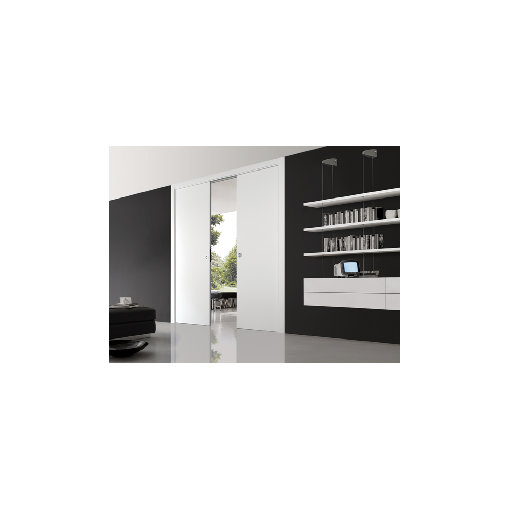 Ewoluto® kaseta do drzwi przesuwnych, która pozwala zawiesić meble, szafki, półki na kieszeni kasety. Teraz kaseta do drzwi przesuwnych staje się prawdziwą ścianą.